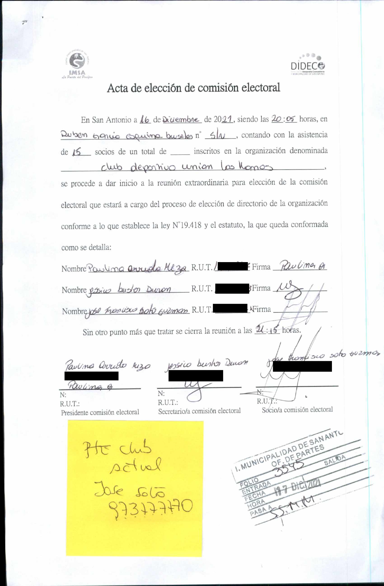 Acta de elección " Club de adulto mayor Las Buenas Amigas"