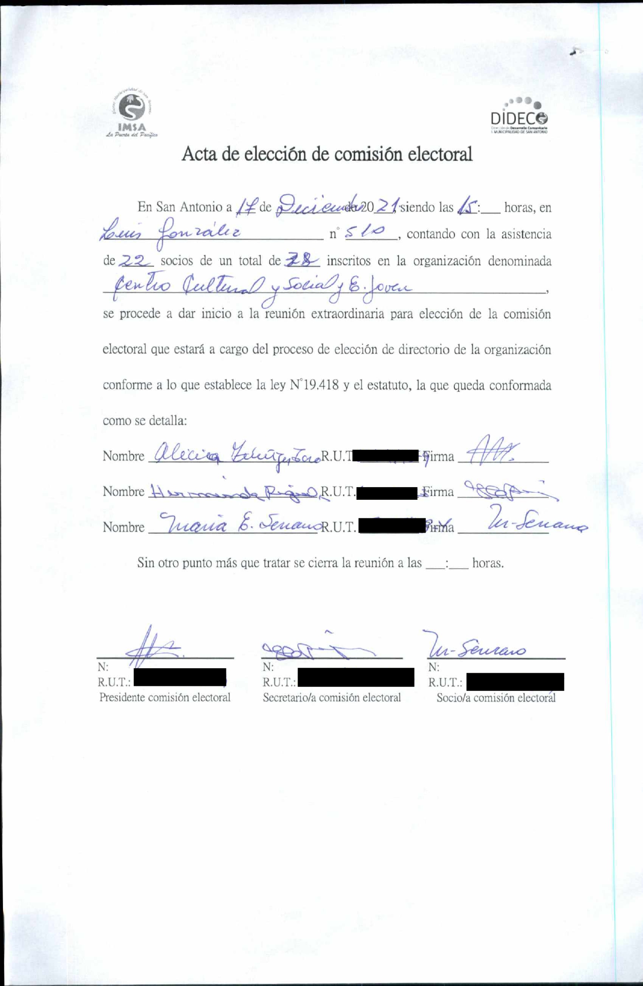Acta de elección " Centro cultural Social y Recreativo Espíritu Joven"