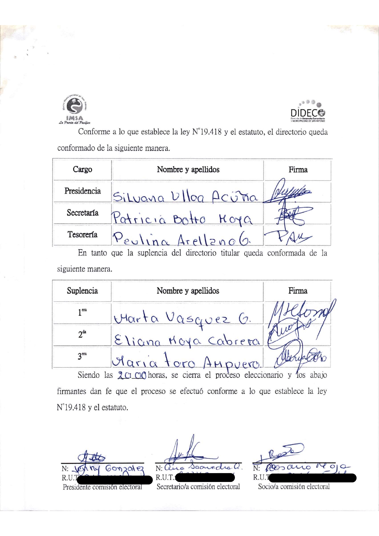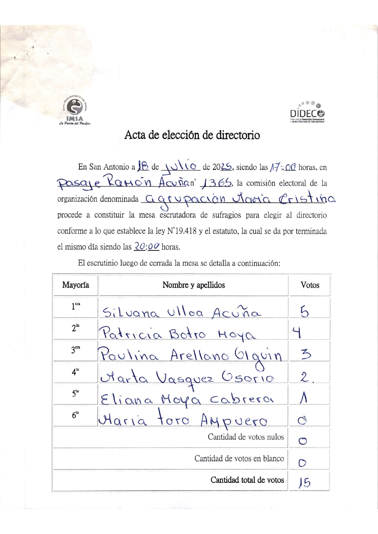 Acta de elecciones AGRUPACION MARIA CRISTINA