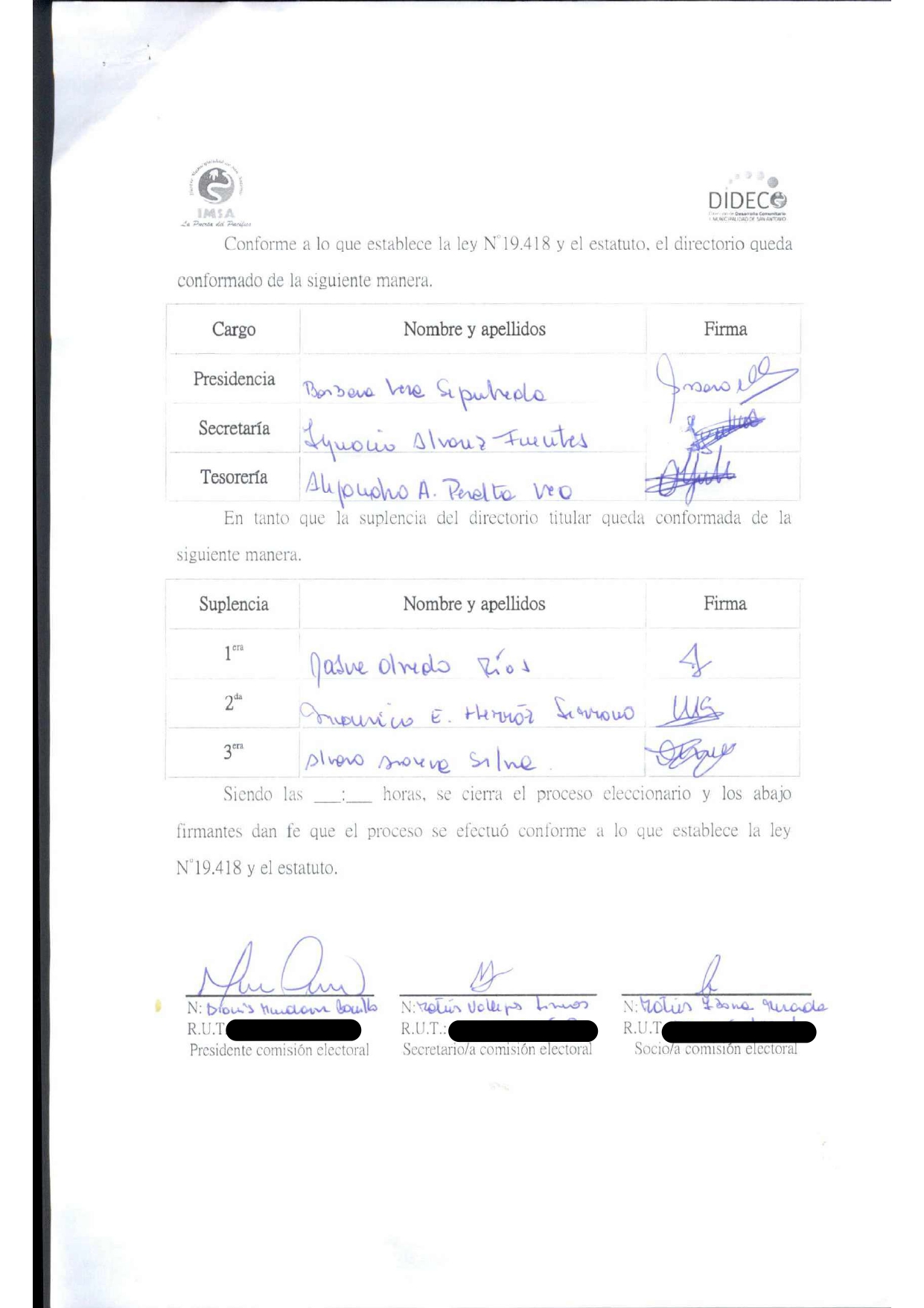 Acta de elecciones THE DORAGON