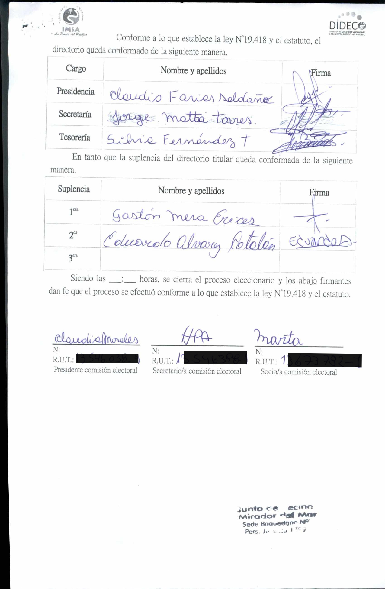 Acta de elecciones JJVV MIRADOR DEL MAR
