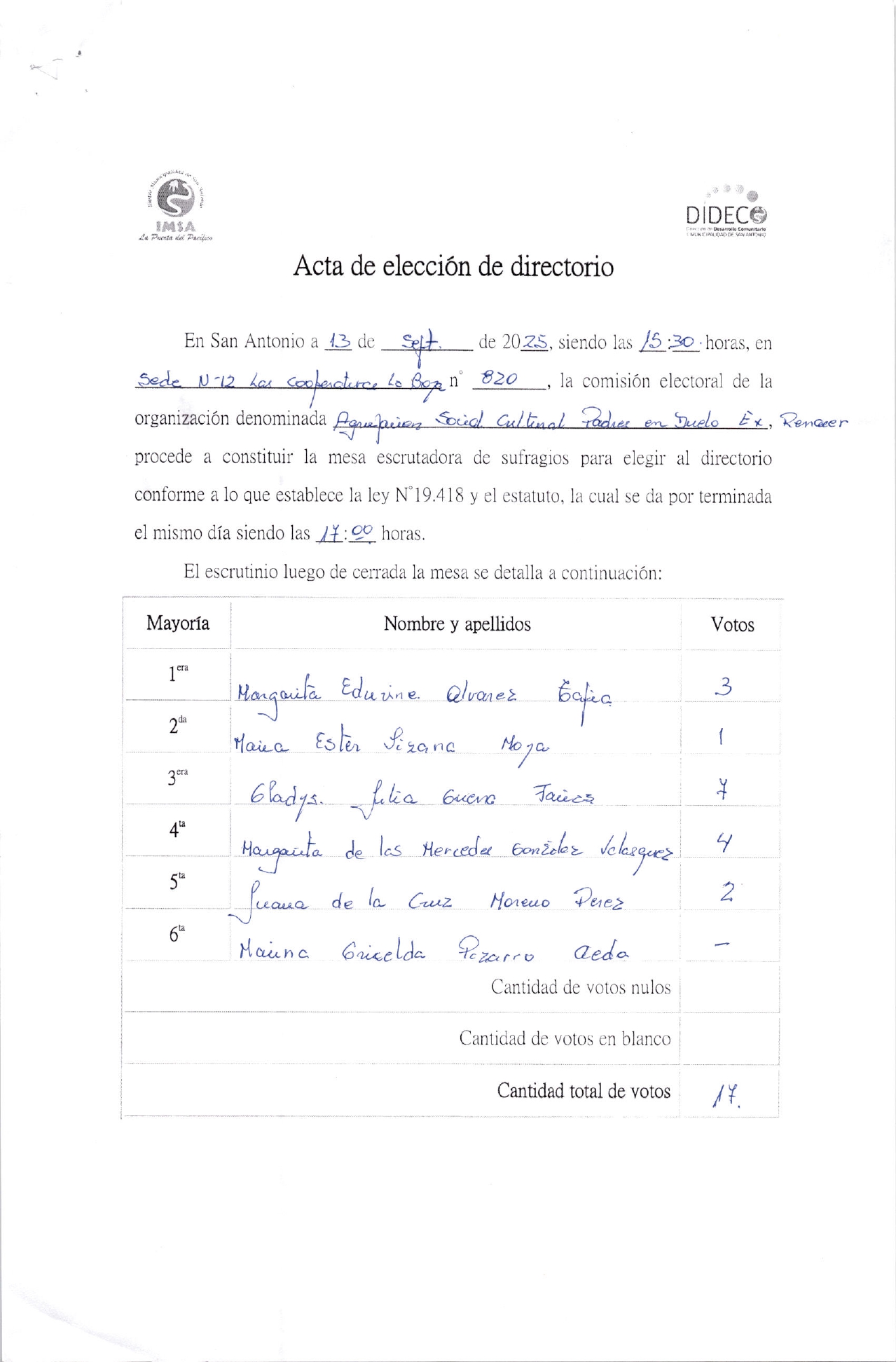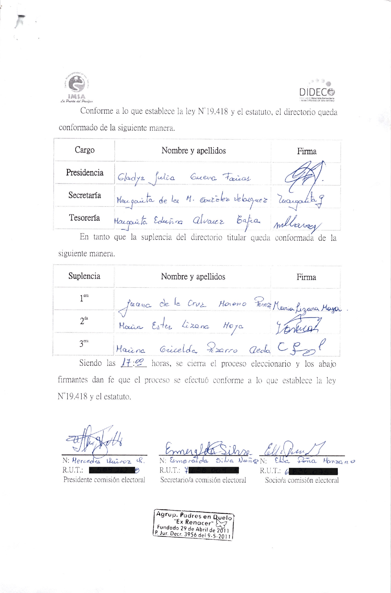 Acta de elecciones PADRES EN DUELO EX RENACER