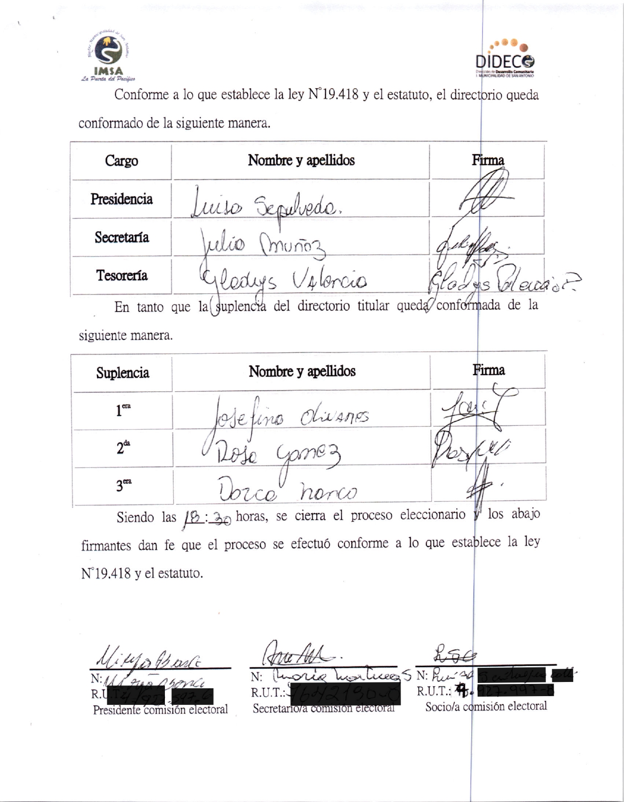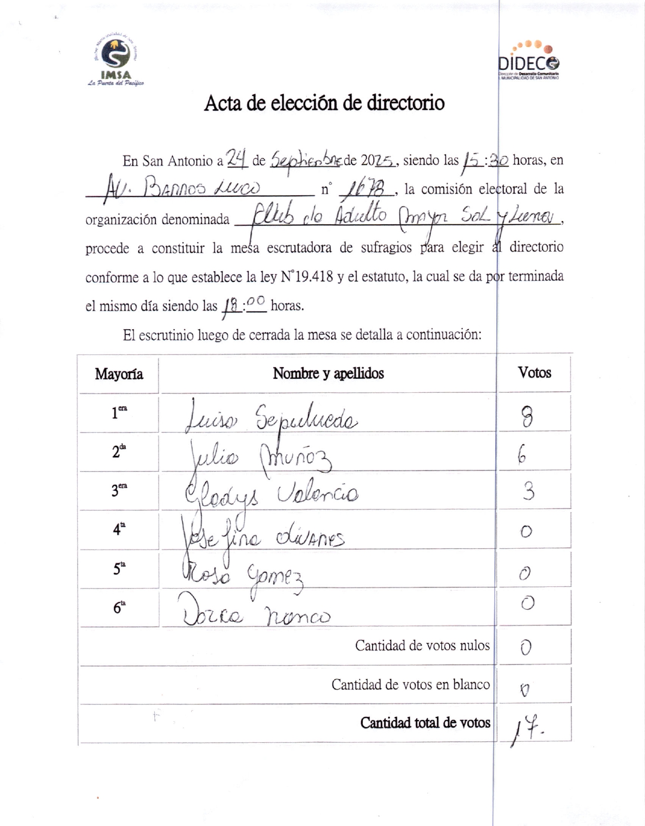 Acta de elecciones ACTA CAM SOL Y LUNA