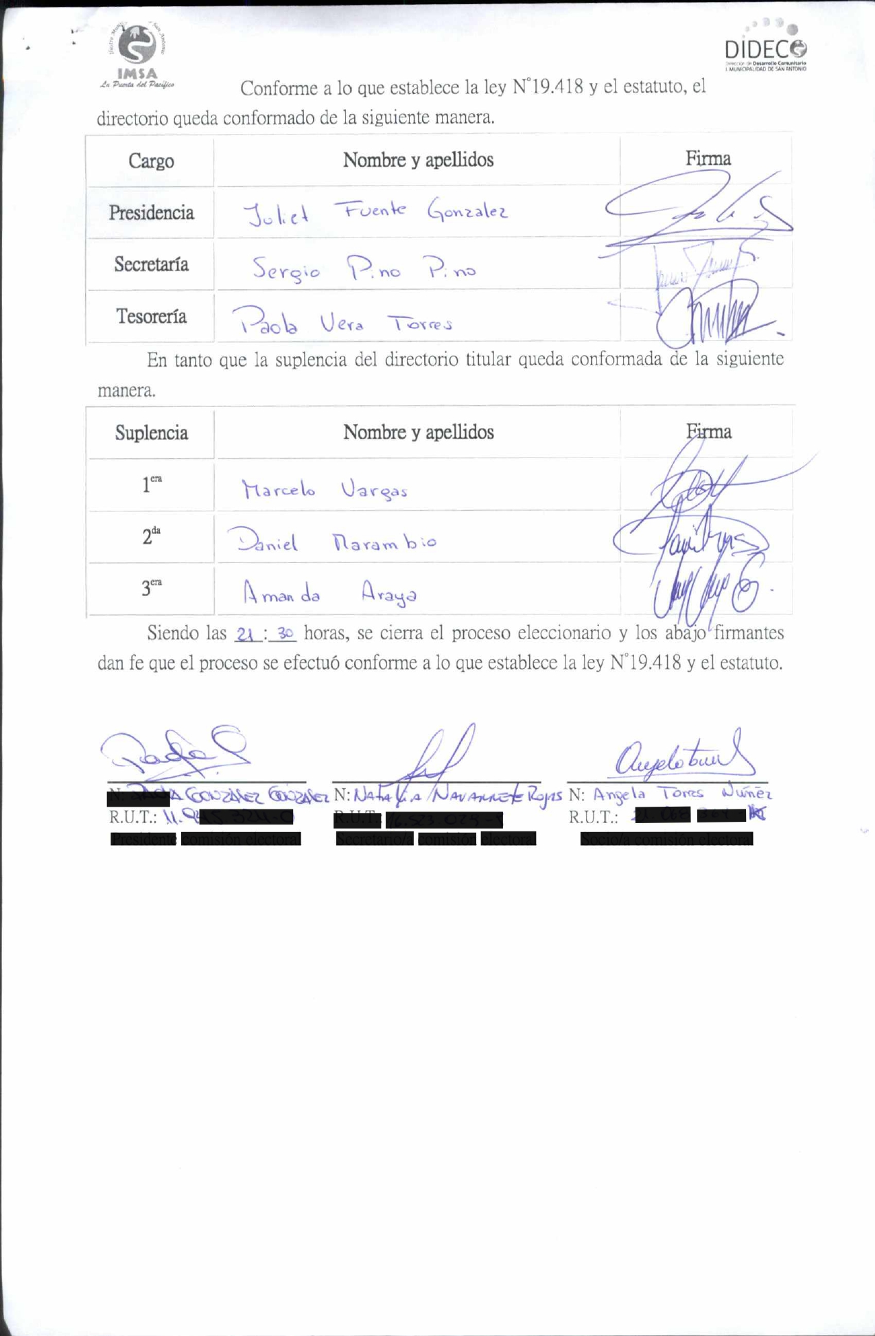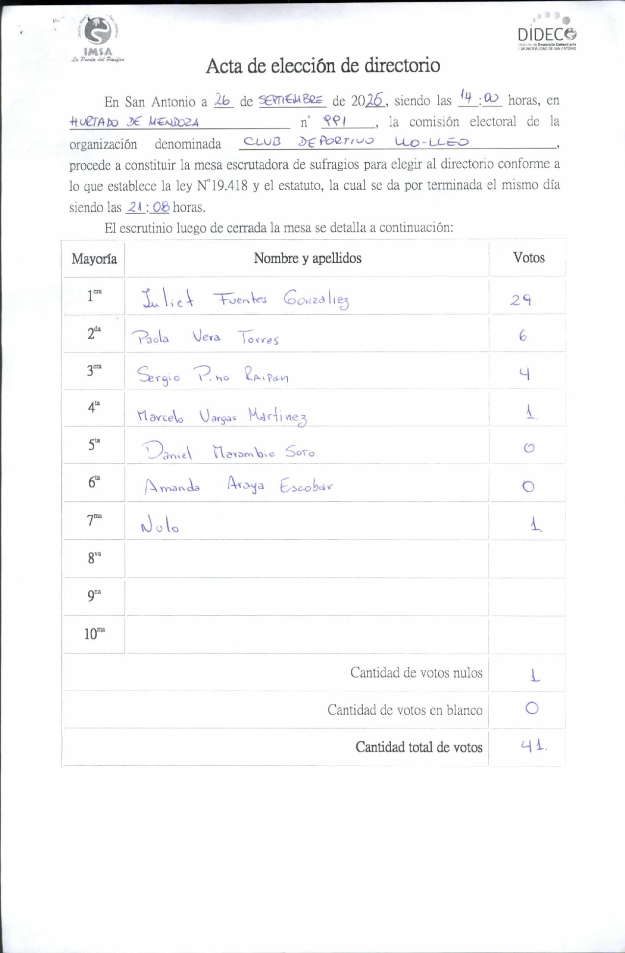 Acta de elecciones CLUB DEPORTIVO LLOLLEO
