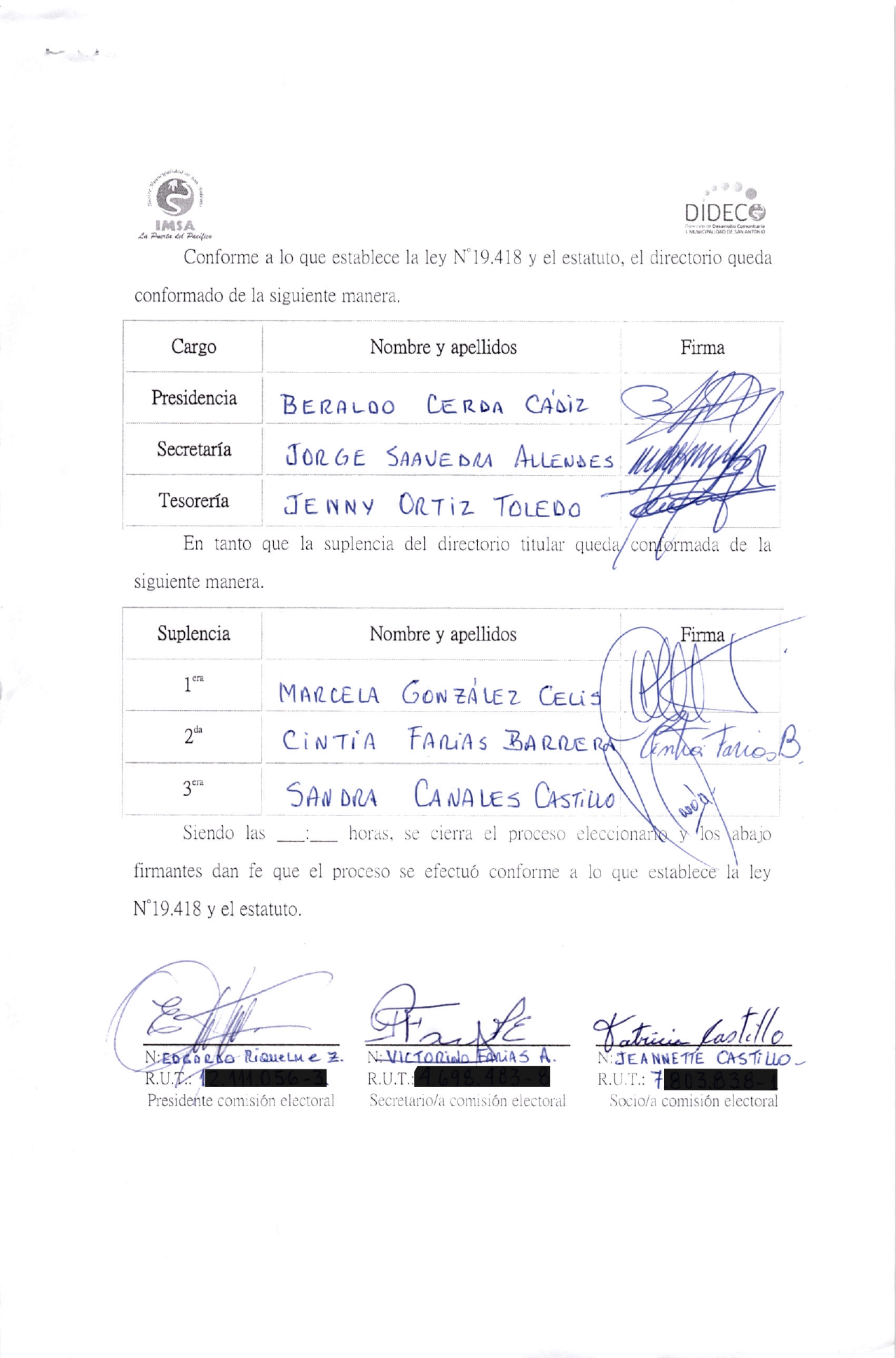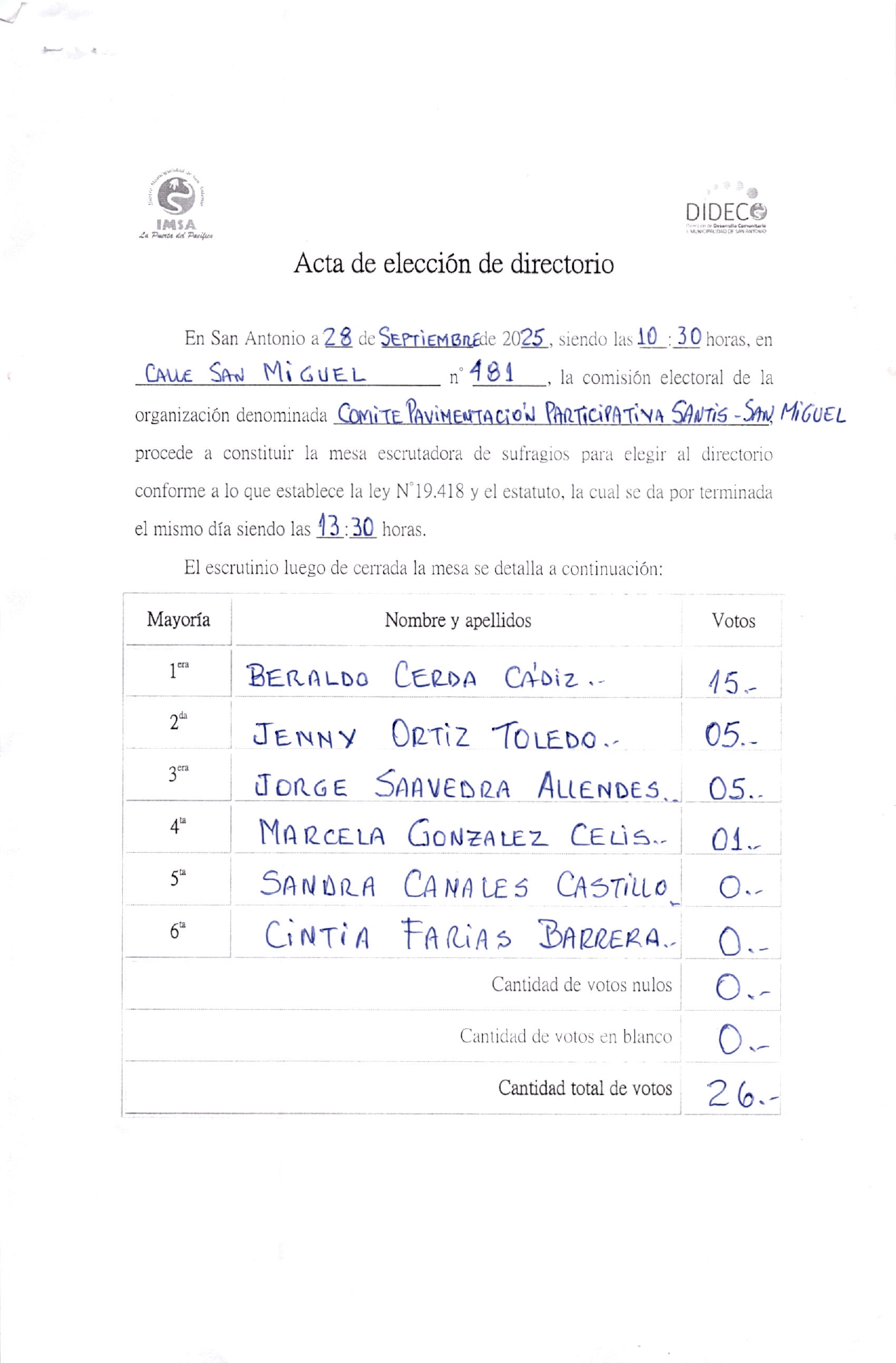 Acta de elecciones ACTA COMITE DE PAV. PJE. SANTIS