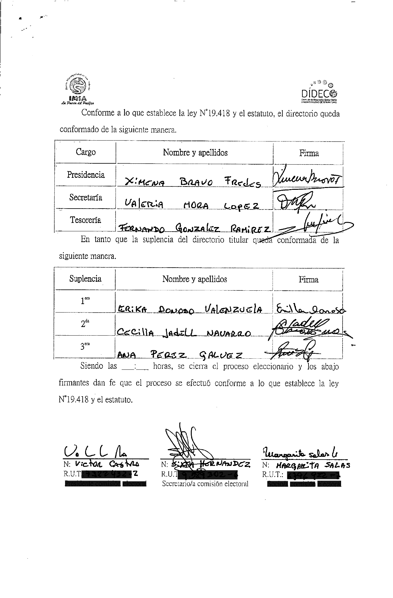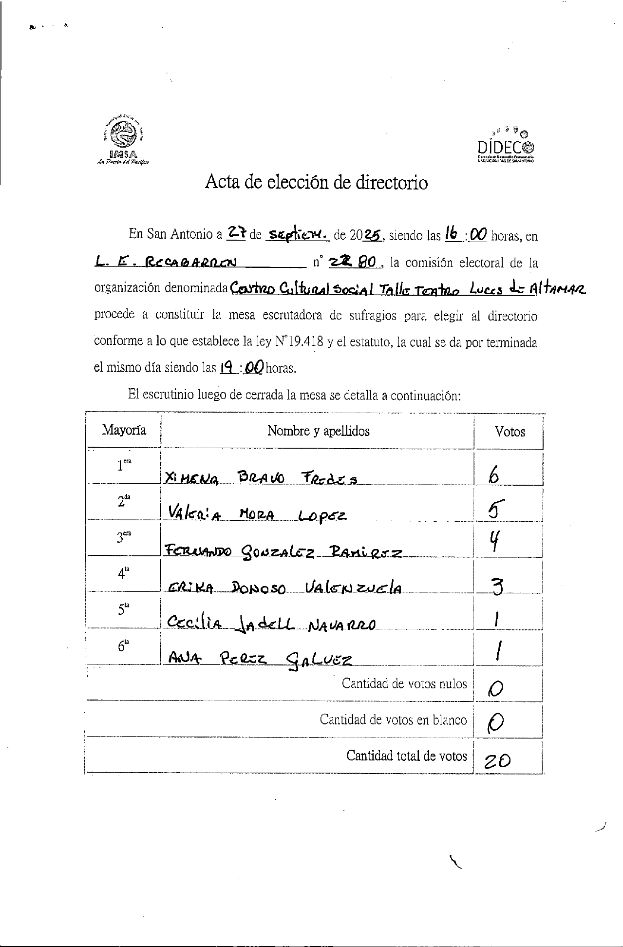 Acta de elecciones LUCES DE ALTAMAR