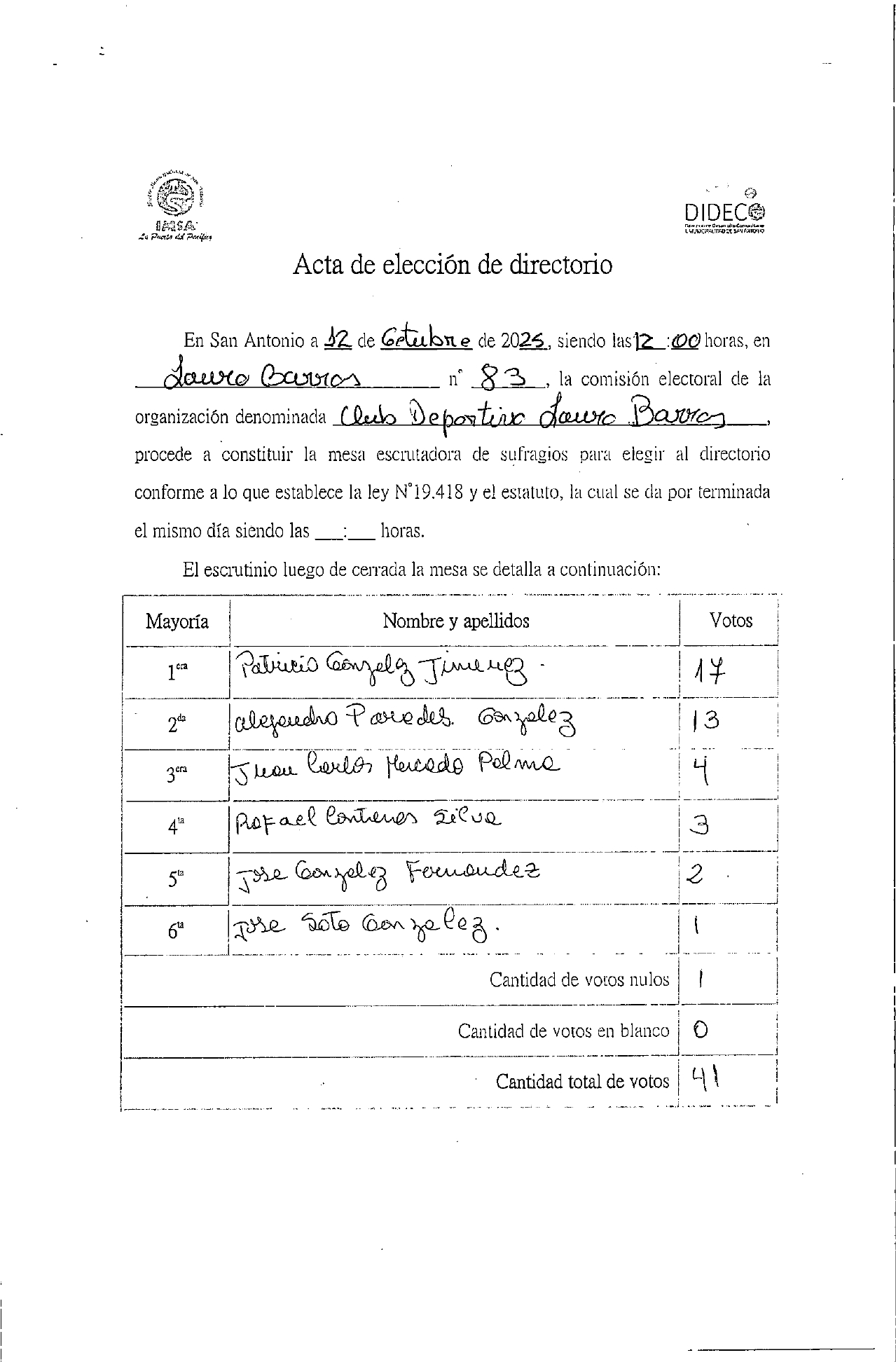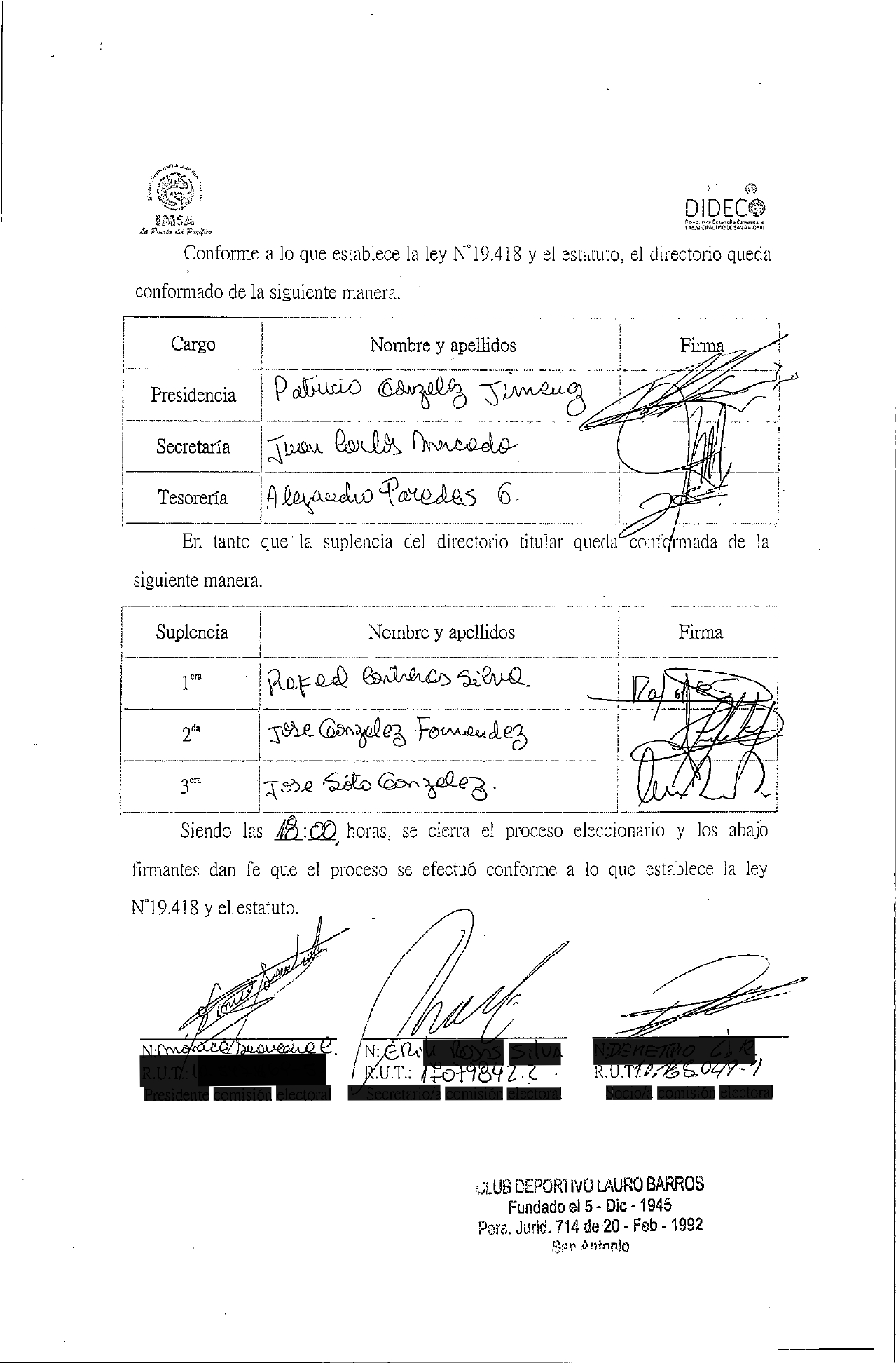 Acta de elecciones CLUB DEPORTIVO LAURO BARROS