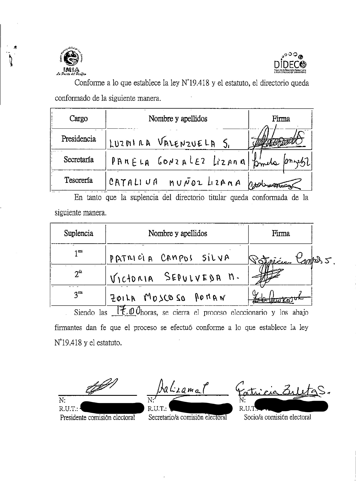 Acta de elecciones JUNTA DE VECINOS NUEVA ESPERANZA