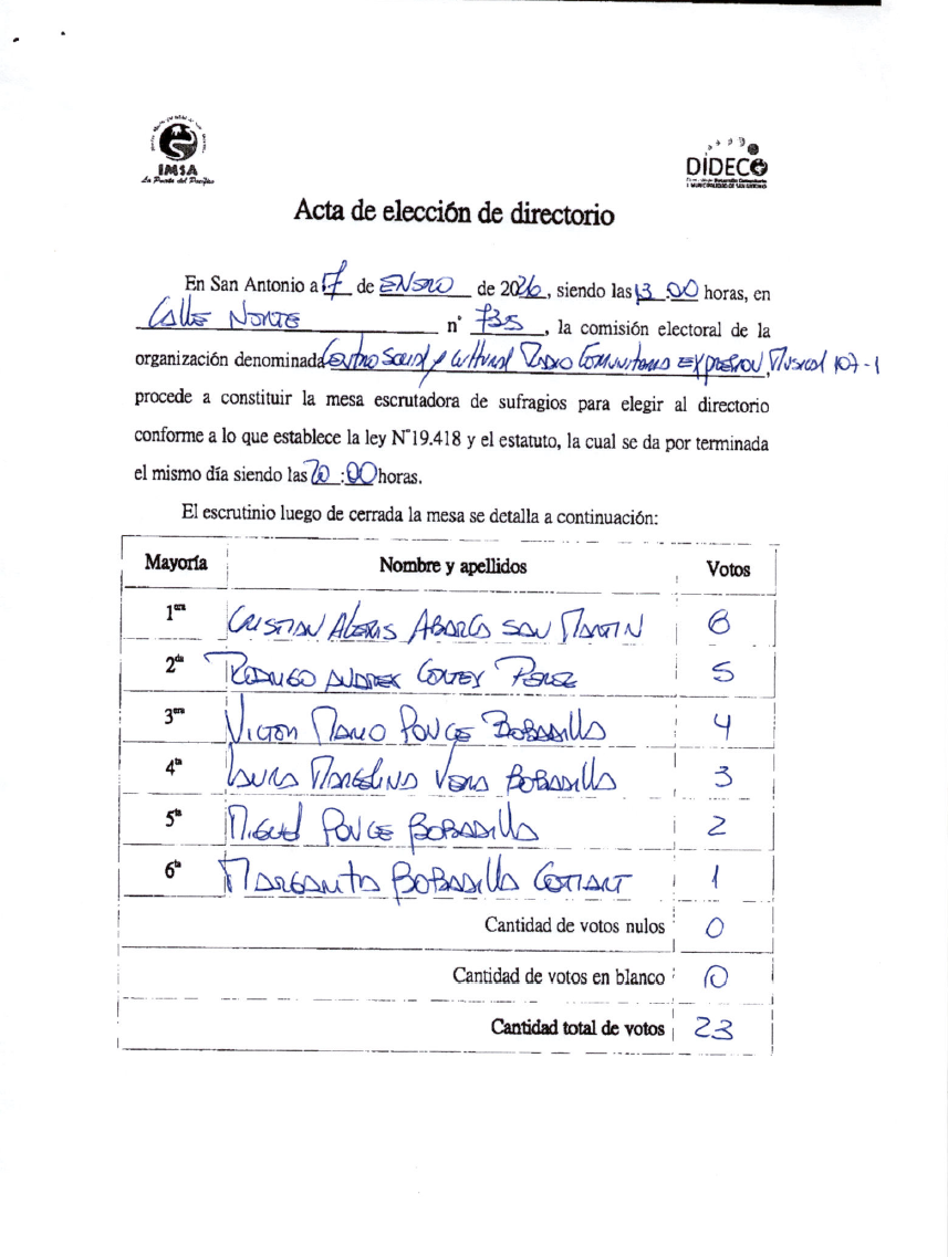 Acta Social y Cultural Radio Comunitario Expresión Musical 107-1