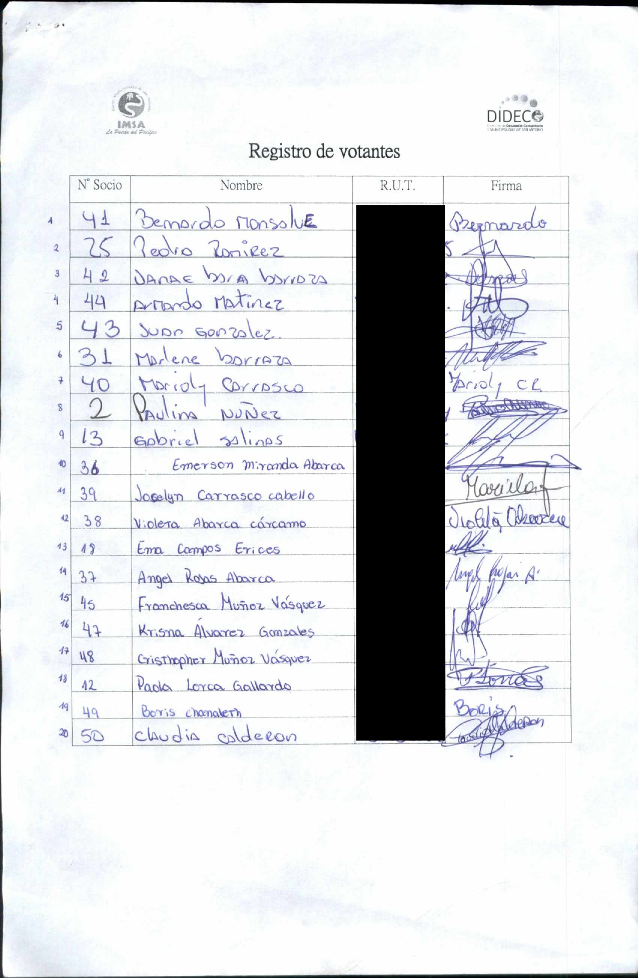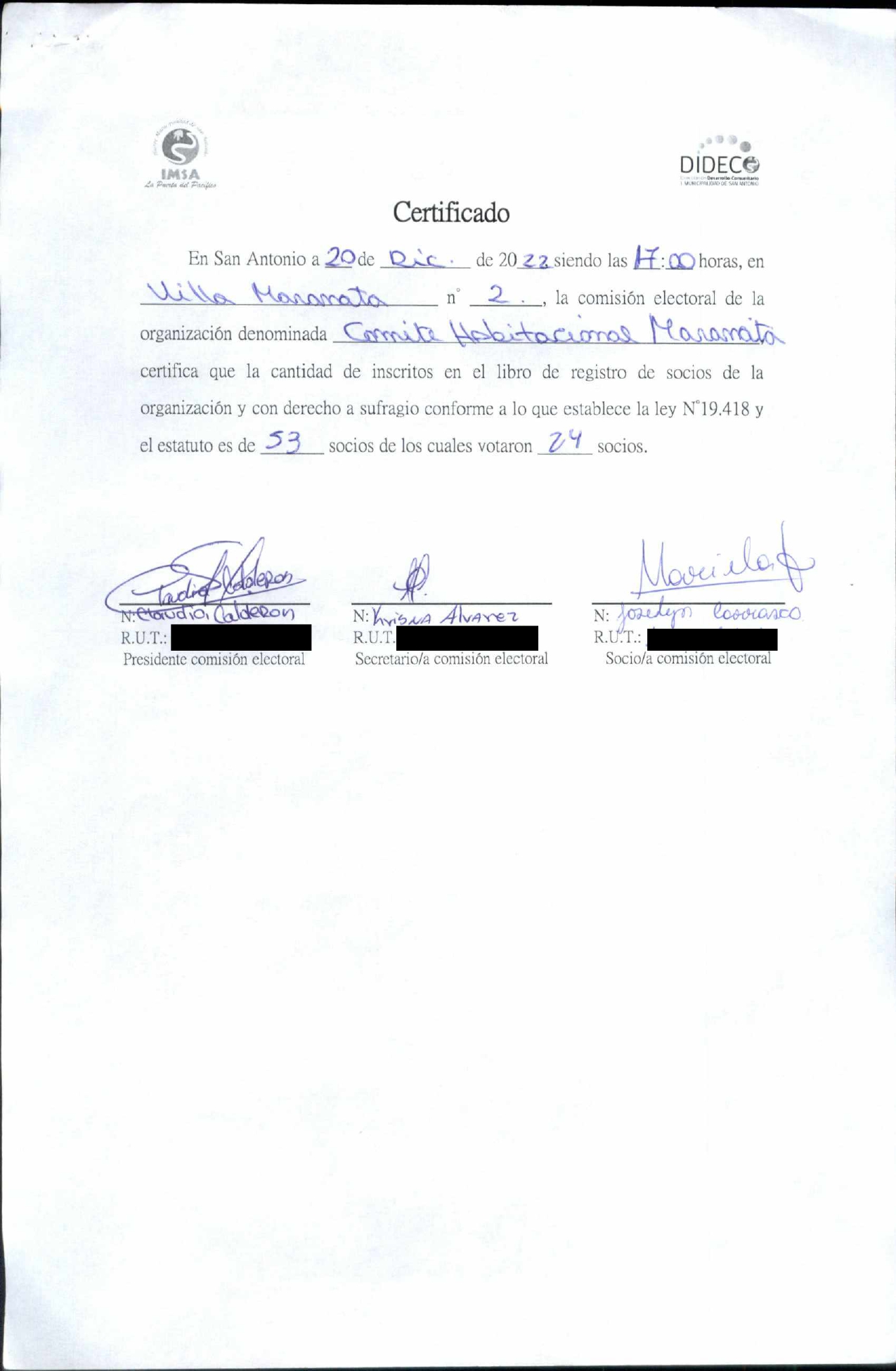 Acta de elecciones "Centro Social Cultural Las Arañitas de Placilla"